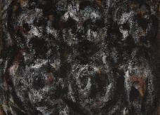 Από το 1959 προσεγγίζει λύσεις αφαιρετικές, για να καταλήξει σε μια λαμπρή, όσο και μαύρη έκρηξη. Το τόσο μαύρο που έχει κατακλύσει τους πίνακες, διατηρεί την ανάμνηση των "ανθρώπινων περιγραμμάτων" του 1949, αλλά τώρα έχει αποκολληθεί, έχει γίνει σπειροειδές, κινητικό και κοσμικό περίγραμμα-ο άνθρωπος, όντας ο κόσμος του. Η έντονη δραματικότητα και το τόσο μαύρο εμπεριέχουν κίνηση δηλωτική της ζωής. Απεικονίζει το δράμα, αλλά και την εξέγερση που εμπεριέχει τον σπόρο της λύτρωσης.